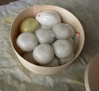 こんばんは。 小さなテーブルと小さな椅子に座り、お団子を食べました。 今夜は一年で最も綺麗な月が見える日なんですって?