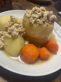 大根とじゃがいもとにんじんの鶏ひき肉あんかけ☆