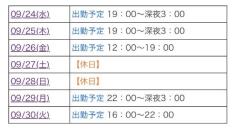なこです 今月の残りの出勤予定です 会える日をチェックしてぜひ遊びに来てね タイミング合うの楽しみにしてます