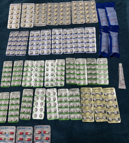 美容の為のビタミン剤等口内炎口角炎塗り薬等全部種類別に袋に入れて分けております身体の中からのケアも大事です先生が薬を出したがるのもあります
